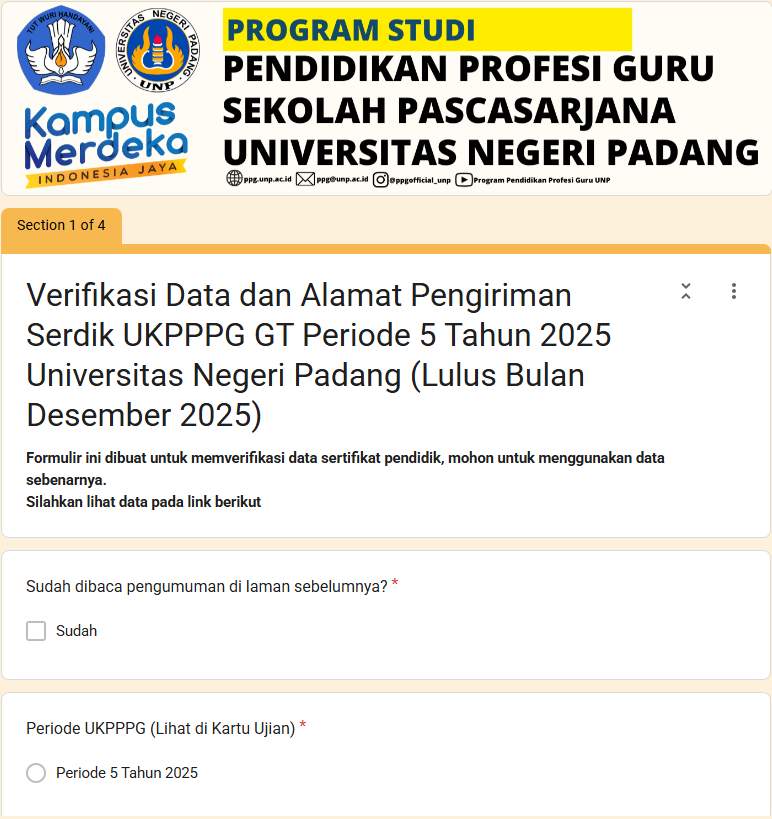 Jika nama Bapak/Ibu tertulis belum isi form PASTIKAN NOMOR UKG BENAR SAAT MENGISI FORM - Pengisian form verifikasi dan alamat pengiriman serdik dibuka hingga 8 Maret 2026